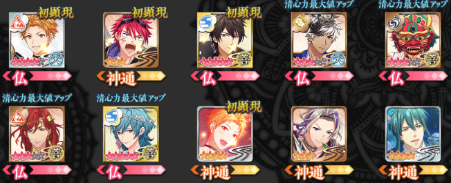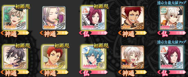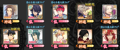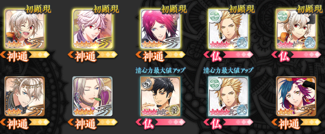 本堂・浄戦・編成・修練・大広間・顕現・物語 ・プ ロフィール [仏績・総合情報・収集情報・称号] ・仏友 [仏友一覧・承認待ち・申請中・仏友検索] ・所持品 [通貨・開帳開悟素材・合通素材・他] ・景観 [景観入手] ・図鑑 [仏・敵・神通・神坐・物語・絵巻] ・寺務所/交換所 [宝珠・寺務所・交換所・奉納] ・オプション[音声・・テキスト速度・他]・連動/機種変 |