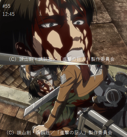 10:55 リヴァイの持つ注射器をつかむエレン「エレン…私情を捨てろ」