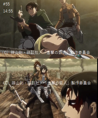 14:48注射器のケースを開くリヴァイにハッとするミカサ。