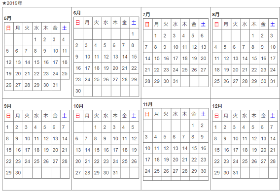 カレンダー(HTMLテーブルのみ)<フリー配布