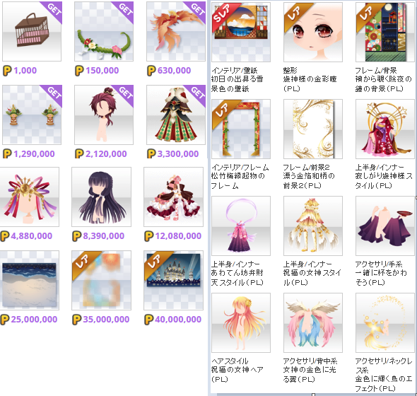 図鑑:家具「金色招き猫」、インナー「綺麗十字のホワイトドレス」