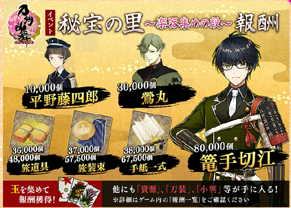 新たに追加された近侍曲は・鯰尾藤四郎・骨喰藤四郎・物吉貞宗