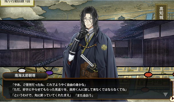 2周目<1863年文久土佐藩へ到着。幻影年寄衆に勝ち南海太郎朝尊と合流します。