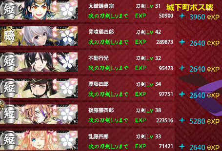 ここも城下町と同じく極短刀30代(all銃兵)で余裕(↓極31~38)